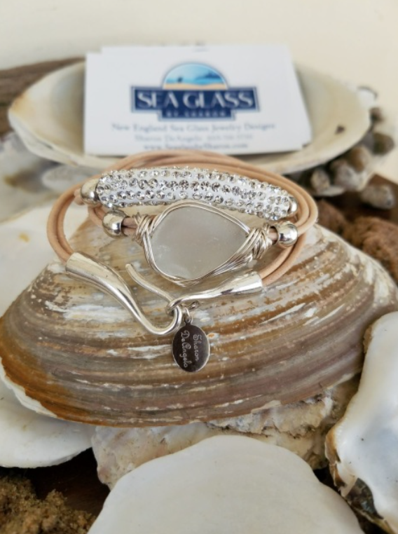 Sparkle Leather Wrap Sea Glass Bracelet!