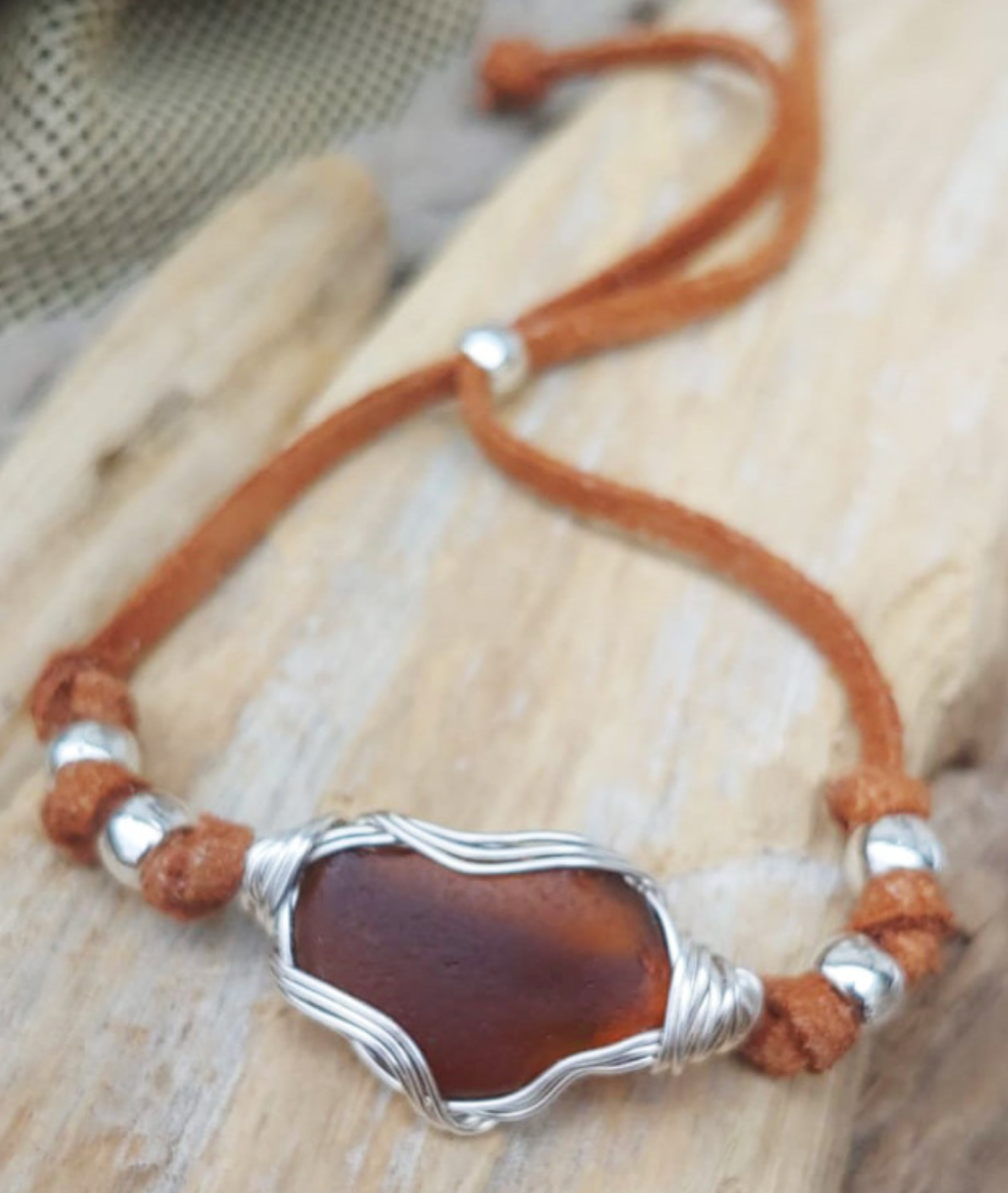 Hand-knotted universal bracelet with pewter beads. This design fits everyone! Choose from rich suede colors using 2mm cord. Your choice of gorgeous, genuine sea glass measuring 1" across. Looks great stacked with other beaded bracelets!